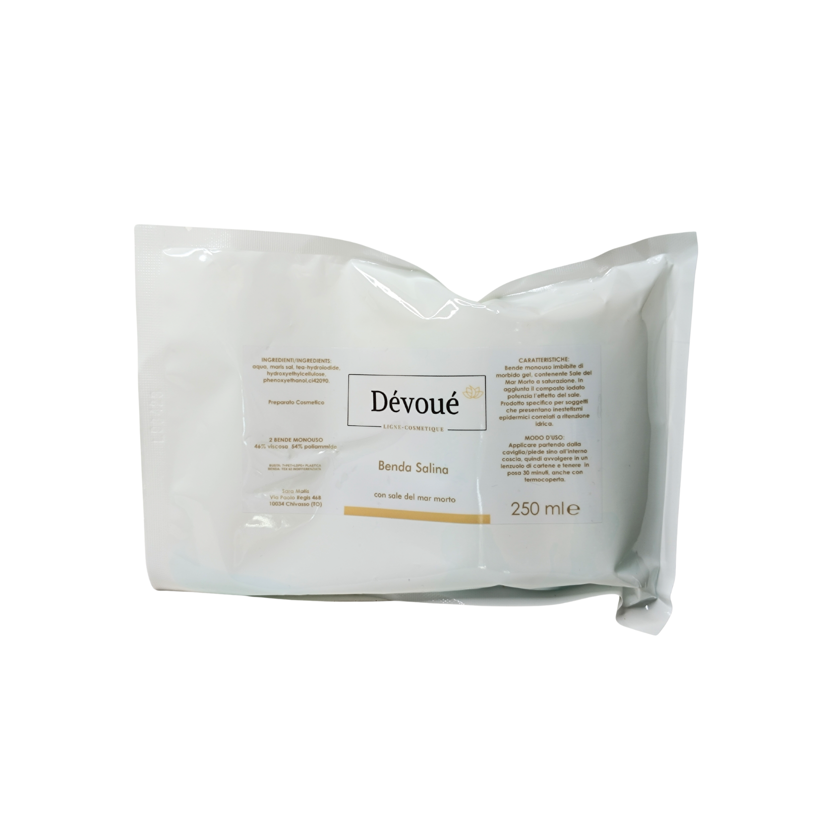 Imbibite di morbido gel contenente Sali del Mar Morto a saturazione in aggiunta ad un composto iodato , per potenziare l'effetto nel contrastare gli inestetismi epidermici della cellulite e ritenzione idrica.